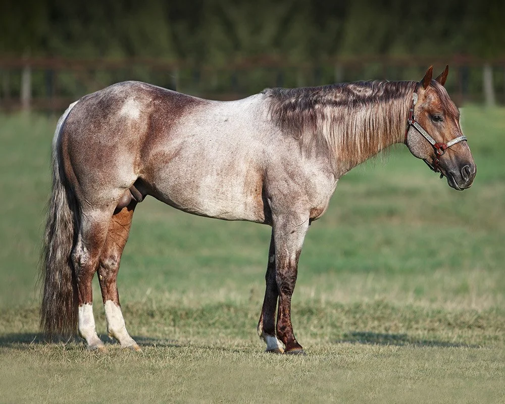 That makes her granddaughter to Paddys Irish Whiskey, who was part of the famous trio of full brothers that included Gallo Del Cielo (“Rooster”) and Grays Starlight. Paddys Irish Whiskey has sired the winners of over $1.6 million, and 5,302 AQHA points, 36 AQHA World/Res. World Championships including 2-time AQHA World Champion Versatility Ranch Horse Smart Whiskey Doc. His top five earners have succeeded in cutting, ranch versatility, reining, reined cow horse and roping events. As a broodmare sire, his daughters have produced earners of more than $2,600,000