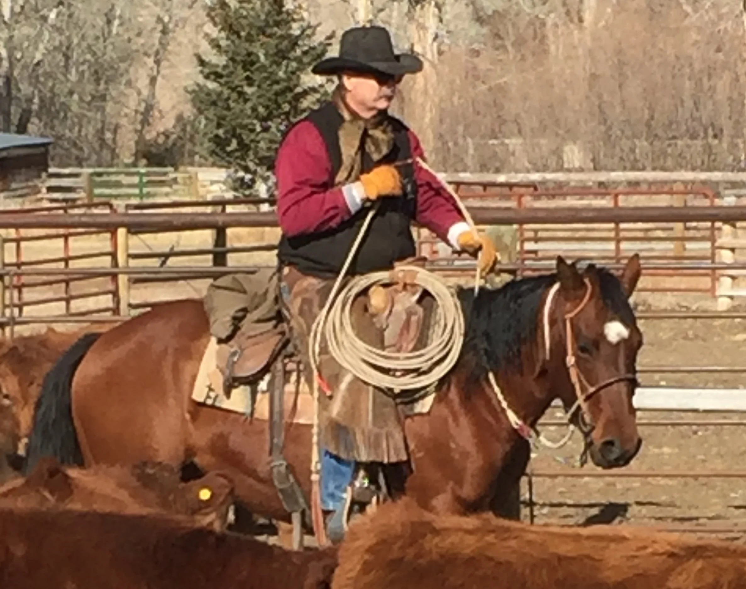 Claire is our son’s horse. Early on he used her in High School Rodeo and then ranched on her. She is as sweet as can be and is one of the funnest horses to heel on, always putting you in position. Three of her offspring have been retained over the years.